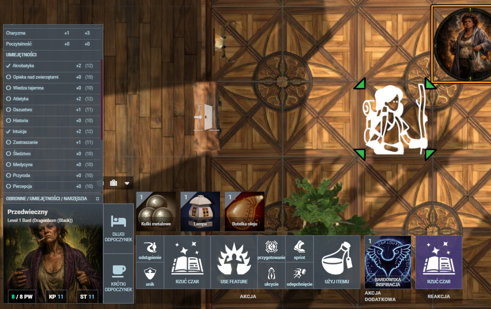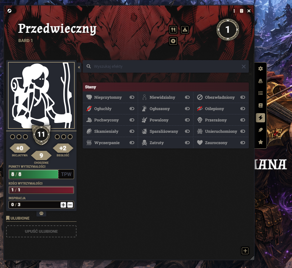 Avatar - po lewej stronie nagłówka znajduje się avatar postaci. Może to być obrazek wybrany przez MG lub gracza, który reprezentuje postać na mapie i w czacie.