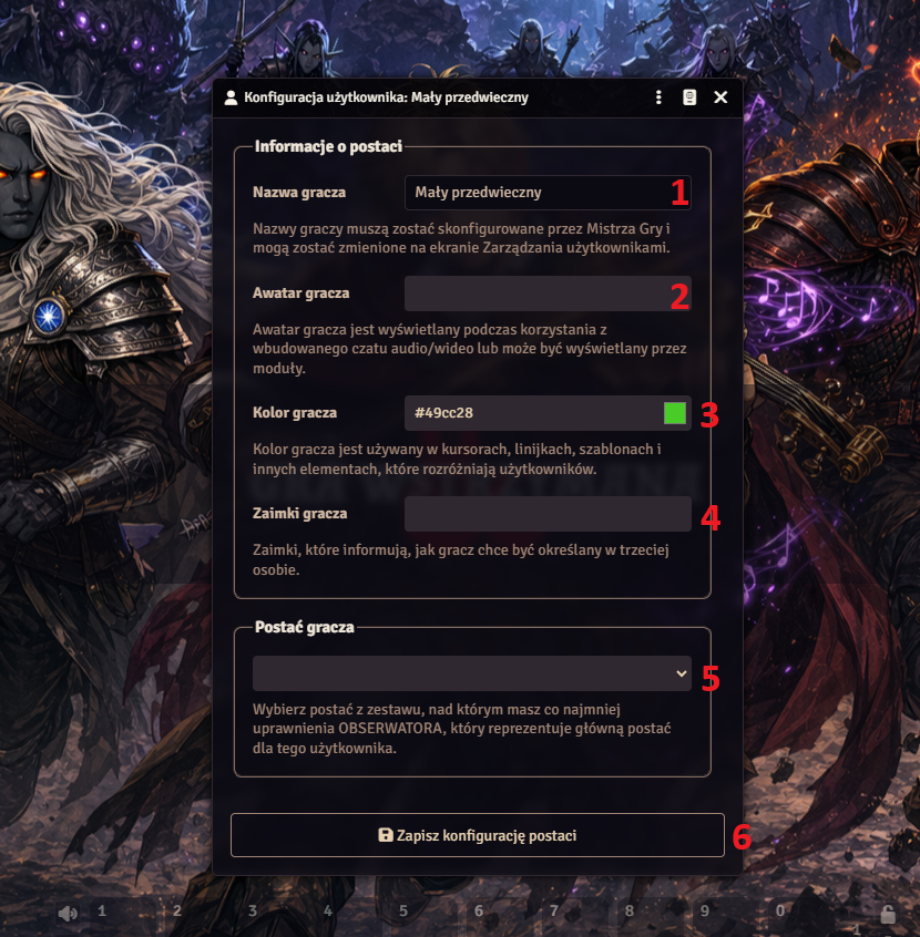 Nazwa gracza Tutaj od górnie jest przypisana wasza nazwa z discorda.